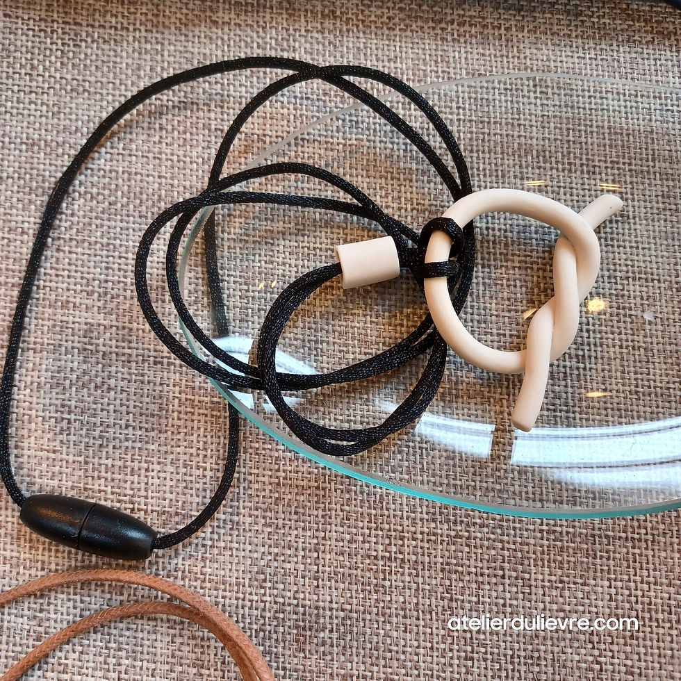 Chaîne aux petits maillons blancs,lien tressé noir et blanc